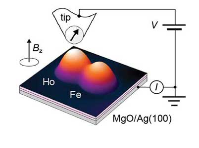 Sebuah sensor kuantum, dirancang oleh tim Heinrich dan saat ini yang unik di seluruh dunia, digunakan untuk membaca memori yang tersimpan dalam atom holmium. Ini terdiri dari sebuah atom besi ditempatkan di samping atom holmium. Dengan menggunakan teknik ini, serta satu lagi, yang disebut terowongan magnetoresistance, para peneliti bisa mengamati bahwa holmium mempertahankan negara magnetik yang sama secara stabil selama beberapa jam.